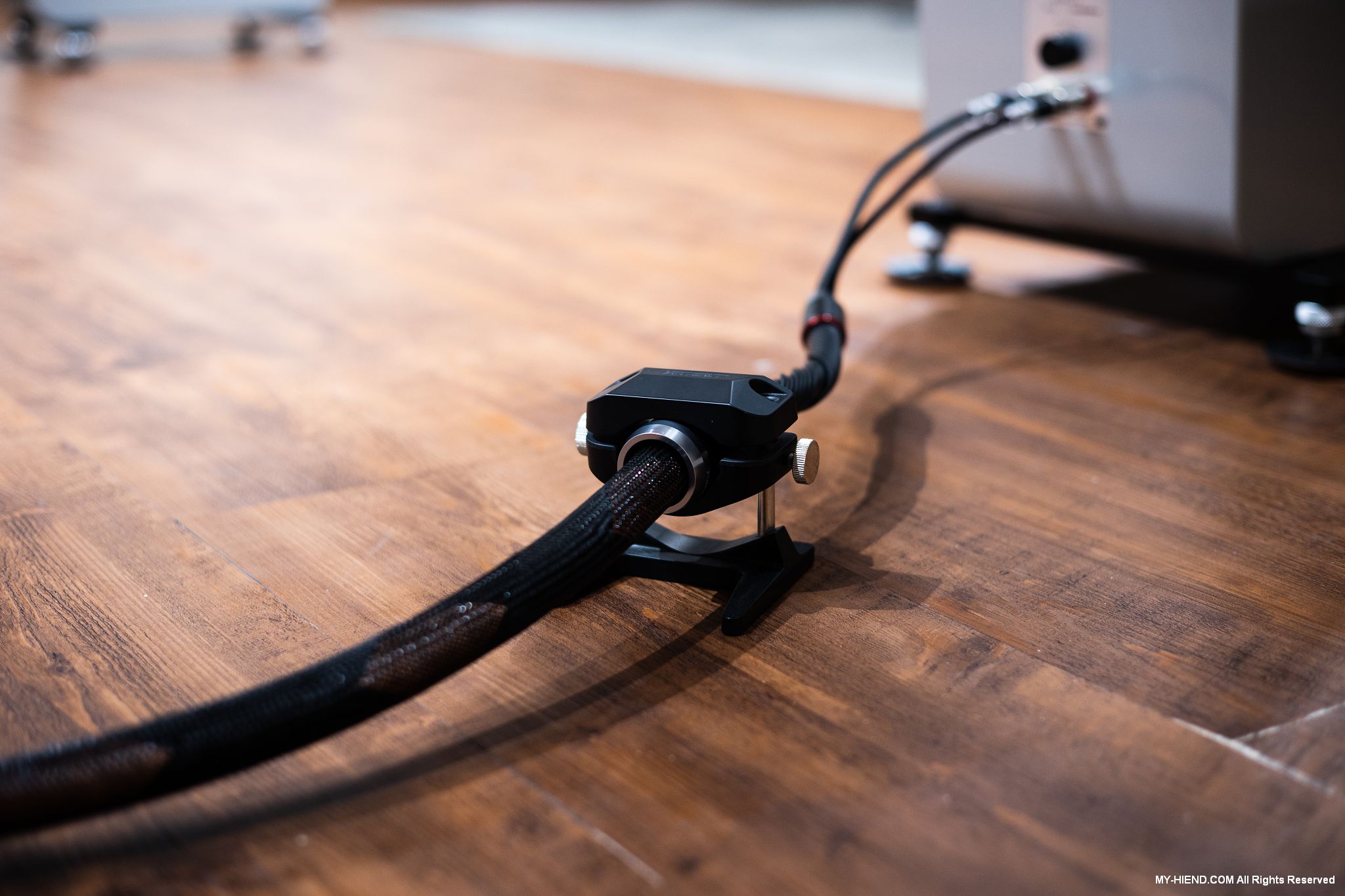 Furutech的线身阻尼环,共有4层,使用NCF与碳纤维、无磁不鏽钢、航钛铝合金等材质所制成,内有固定线材之结构消除机械震动。上面有一个箭头为方向性,需指向喇叭。