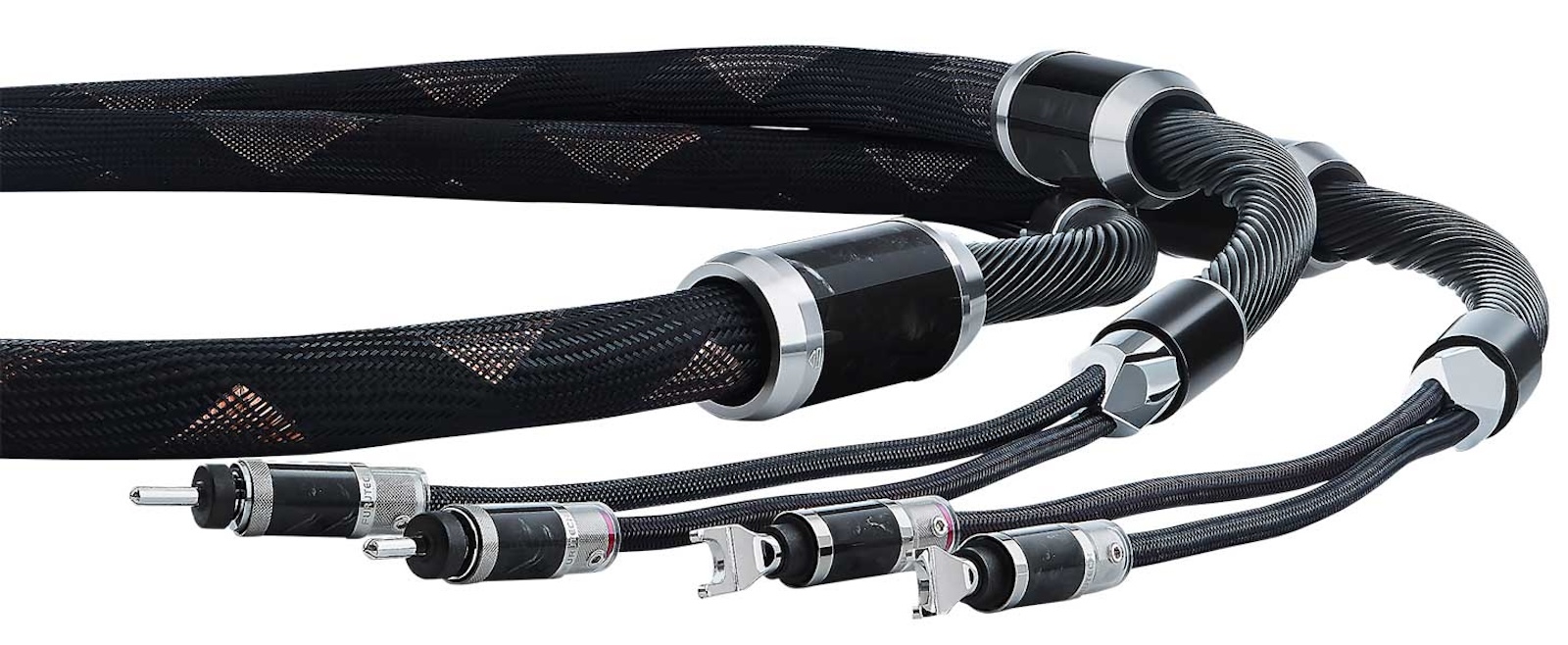 端接采用Furutech专用Project V1-S连接器,提供Y型和香蕉型两种规格。这些连接器采用非磁性镀铑α纯铜导体,外壳由NCF材料和高级尼龙绝缘。连接器外壳和阻尼环采用四层混合NCF碳纤维结构,并涂覆硬化透明阻尼涂层。最终形成牢固、机械稳定的连接,与该线缆注重控制力、中性和长期可靠性的设计理念相契合。