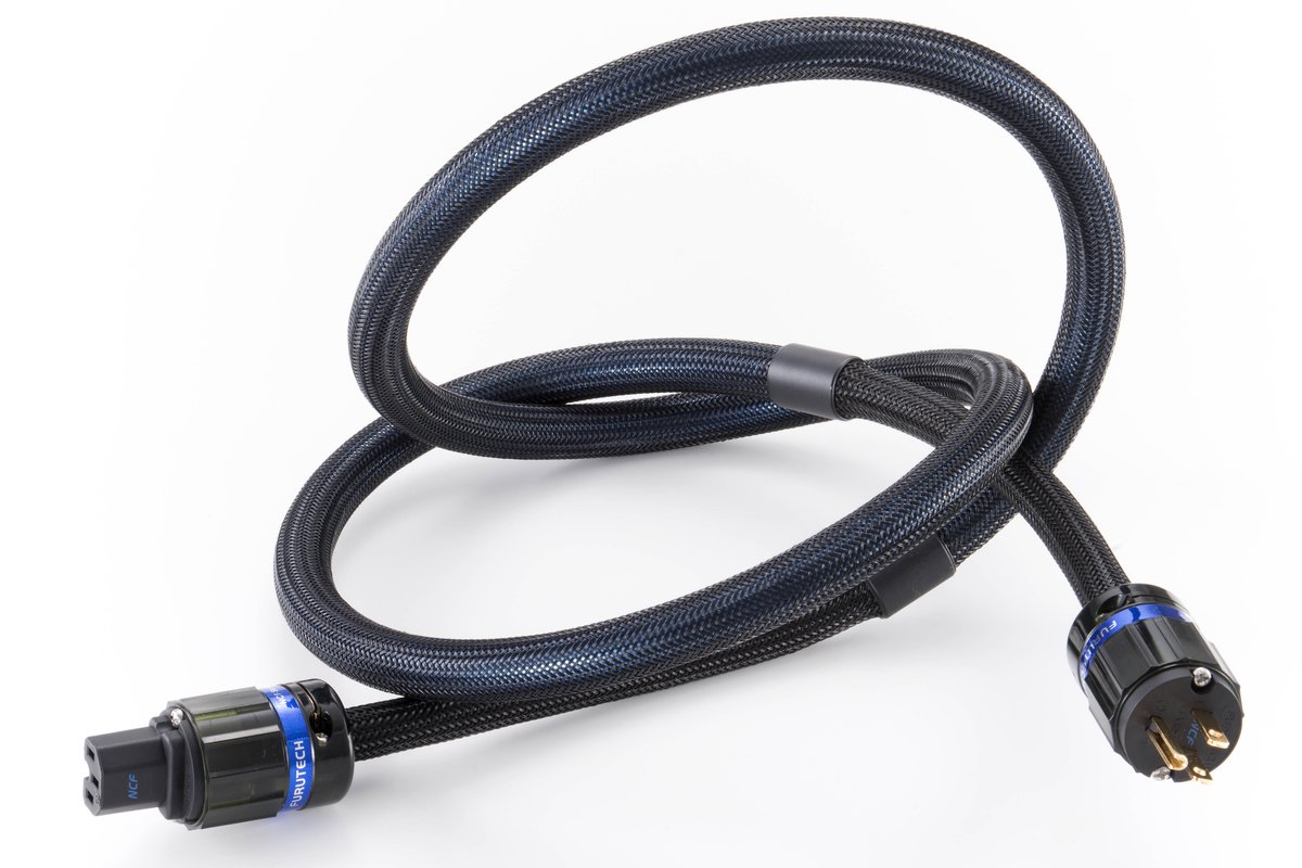 Furutech 发布了一款极具吸引力的中端电源线。这款名为“Origin Power NCF(G) 电源线”的产品是该公司最新设计。其最大的亮点在于整条电源线均采用了特殊的 NCF 材料。这款新开发的电源线采用了经过专有超低温和特殊电磁场处理的“αμ-OFC”导体。它由三根 6.22 平方英寸的导线芯组成,以 7 x 35 股/0.18 毫米的绞合方式缠绕而成。编织屏蔽层也采用了相同的 μ-OFC 导体。绝缘层采用聚乙烯材料,具有低电容和优异的机械阻尼性能。此外,三层护套的最内层还混合了 NCF 和碳颗粒,以提升音质。这是 NCF 首次应用于电源线领域。该电源线的外径约为 19 毫米。输入和输出端子采用 Furutech 旗舰产品的特殊版本,即电源插头“FI-28M(G)”和 IEC 连接器“FI-28(G)”,它们首次将具有减振和静电效应的 NCF 集成到“FI-28M NCF(G)”和“FI-28 NCF(G)”中。
