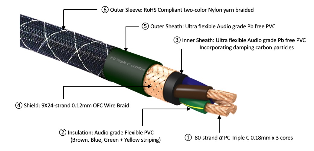 导体:80 股 α PC-Triple C(0.18mm × 3 芯)